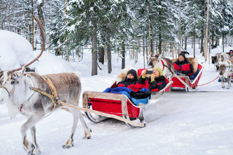Śniadanie. Przejazd do Rovaniemi. Zwiedzanie zaczniemy od wizyty na farmie reniferow, gdzie dowiemy się więcej o tych niezwykłych zwierzętach. Następnie krótka przejażdżka saniami z reniferowym zaprzęgiem i przerwa na kawę (w cenie). Po południu przejazd do wioski Świętego Mikolaja i wizyta w mini Zoo – Elf’s Farmyard. Powrót do hotelu, czas wolny na samodzielne odkrywanie Ruki. Nocleg.